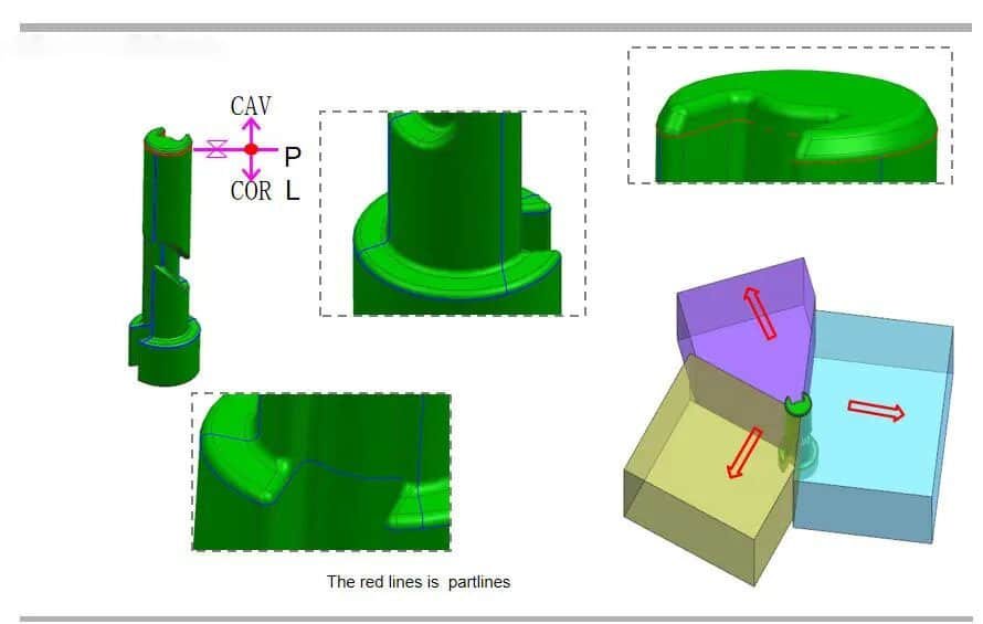 For example, consider a part as shown in the image. The mold engineer will anticipate potential flash issues that may arise during injection molding and provide reasonable suggestions. The customer adopts these suggestions, the data is modified, and mass production becomes feasible.